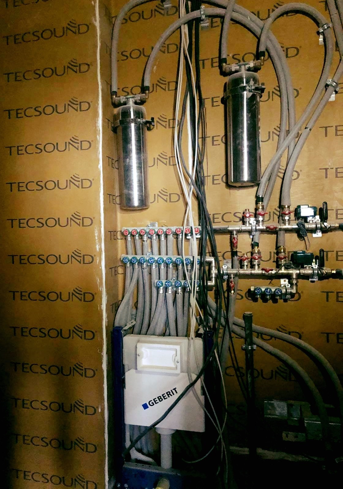 Звукоізоляційна мембрана Tecsound FT 75 - це високоефективний звукоізоляційний матеріал, що поєднує в’язкоеластичний полімер Tecsound та односторонній звукопоглинальний шар повсті. Така структура забезпечує одночасно поглинання шуму, вібродемпфування та підвищення акустичного комфорту у житлових, комерційних і промислових приміщеннях.